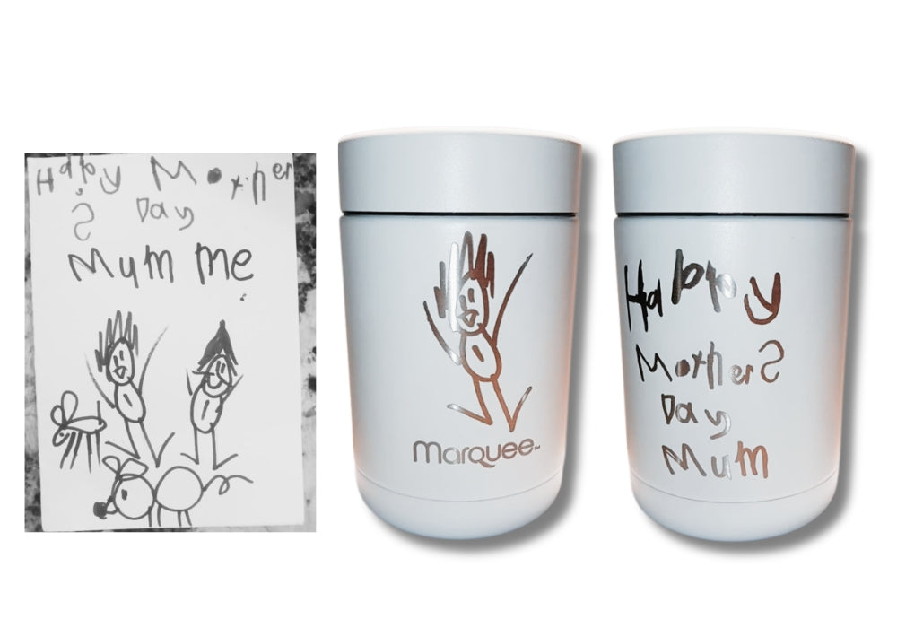 Ideal for Mother's Day, anniversaries, or just because, our service transforms your treasured messages into heartfelt keepsakes. Imagine the joy of gifting a cup or any beloved item, now forever etched with a special message or drawing from someone dear. Let us help you create a keepsake that will be cherished and relived every day.
